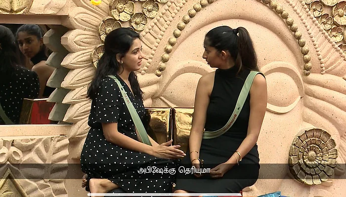 இந்தக் கூத்துகளின் நடுவில் கோமாளி போல “இந்தக் காளியோட ஆட்டத்தை இனிமேத்தான் பார்க்கப் போறீங்க?” என்கிற ஆவேசத்தோடு அலைந்து கொண்டிருக்கிறார் அபிஷேக். “ஒரு பெரிய சம்பவத்தை இனிமேத்தான் பார்க்கப் போறீங்க. ஒரு கதகளி ஆட்டம் இருக்கு” என்றவர், இன்னொரு இடத்தில் ‘பரதநாட்டியம்” என்கிறார். (எந்த டான்ஸ்ஸூன்னு முடிவு பண்ணிக்கங்க தம்பி!). இவர் எதற்காக இத்தனை பெரிய பில்டப்போடு சுற்றுகிறார் என்று தெரியவில்லை. ஒருவேளை அப்படி எந்தச் சம்பவமும் நடைபெறாவிட்டால் வாக்களிப்பதின் வழியாக அபிஷேக்குக்கு பெரிய ‘சம்பவத்தை’ பார்வையாளர்கள் நிகழ்த்தி விடக்கூடும். (அதை மொதல்ல செய்ங்கப்பா!).