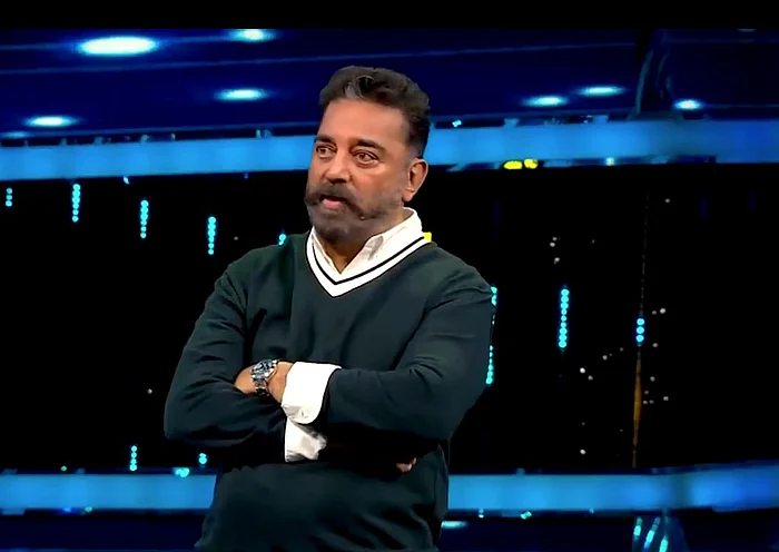 பார்வையாளர்கள் அமர்ந்திருந்த அரங்கம் பணக்கார யோகா மண்டபம் போல் இருந்தது. நேற்று கமல் அணிந்திருந்த ஆடை, அபத்தமான எக்ஸ்ட்ரா ஃபிட்டிங்குகள் இல்லாமல் நன்றாகவே இருந்தது. வாக்கிங் உடையில் இருந்தாலும் வசீகரமாக இருந்தார் கமல். ஆனால் உட்புற சட்டை முன்பகுதியில் கீழே தொங்கிக் கொண்டிருந்தது. கேட்டால் ஃபேஷன் என்பார்கள்… எதற்கு வம்பு?