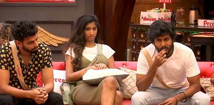 ஸ்டோர் ரூமில் அக்ஷரா ஒளித்து வைத்த நாணயத்தை ஆட்டையைப் போட்டார் பாவனி. அக்ஷராவுக்கு இது உடனே தெரிந்து விட ‘சோனா முத்தா...போச்சா” என்று தலையில் வைத்துக் கொண்டார். தோட்டத்தின் கதவின் இடுக்கில் பாவனி (அபினய் மூலம்) ஒளித்து வைத்த இரண்டு நாணயங்களை நீரூப் எடுக்க முயலும் போது அபினய் பார்த்து விட்டு ‘திருடன்... திருடன்..’என்று கூவ ‘பெடஸ்ட்ல்ல இருக்கும் போது எடுத்து பிடிபட்டாதான் செல்லுபடியாகும்” என்று நிரூப் அவரிடம் மல்லுக் கட்டிக் கொண்டிருந்தார். (விதிகளை உடைப்பதில் வல்லவரான அபினய்க்கே டியூஷனா?!). அதுவரை அமைதியாக இருந்த வீடு சில நிமிடங்களில் அமளி துமளியானது. பிரியங்காவின் கூச்சல் காதை கிழித்தது.