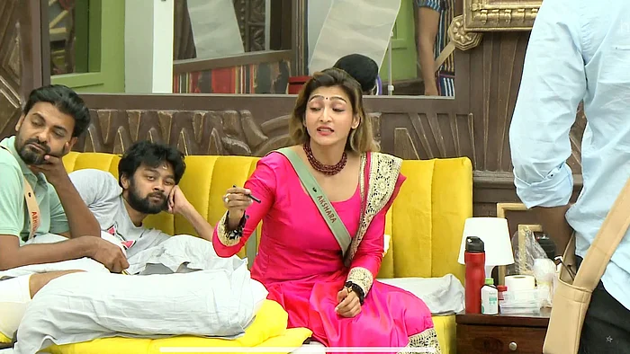 “நீ ஒரு டிராமா பண்றேன்னு எனக்குத் தெரியும். அதை நான் கொண்டாடறேன்... உனக்குப் புரியுதா? இந்த கேம் நல்லாயிருக்குல்ல” என்று ராஜூவிடம் நைச்சியமாகச் சிரித்து சதுரங்க ஆட்டம் ஆடிக் கொண்டிருந்தார் பிரியங்கா. இவருடன் பிறகு வந்து இணைந்தார் அபிஷேக். ஆனால் கடப்பாறையை விழுங்கிவிட்டு இஞ்சி கசாயம் குடிப்பது போன்ற முகபாவத்துடன் இவர்களைச் சாமர்த்தியமாக எதிர்கொண்ட ராஜூவின் கல்லுளிமங்கத்தனத்தை நிச்சயம் பாராட்டியாக வேண்டும். “உன் பக்கத்துலயே உக்காந்து உன்னை ஒருத்தன் செஞ்சிட்டு இருக்கான்” என்று ராஜூ சொல்ல, அது நான்தான் என்று சொல்லாமல் சொல்வதுபோல தானாக வந்து ஆஜர் ஆனார் அபிஷேக்.