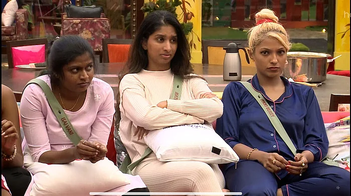 “நான் உன்னைக் காப்பாத்தறேன். நீ என்னைக் காப்பாத்து” என்று பிரியங்கா க்ரூப் பேசிக் கொண்டிருந்ததில் ஆச்சரியமில்லை. அதற்குப் பிறகு நடந்ததுதான் சற்று ஆச்சரியம். ‘தன்னிடம் அதிக உரிமை எடுத்துக் கொண்டு அழிச்சாட்டியமாக கொள்ளும் பிரியங்காவிடம் நிரூப் உள்ளூற எரிச்சல் கொள்ள ஆரம்பித்திருக்கிறார் என்பதைப் புரிந்து கொள்ள முடிந்தது. ரகுவரன் பாணியில் தன்னிடம் பேச ஆரம்பித்த பிரியங்காவிடம் இருந்து உரையாடலை துண்டித்துக் கொண்டு நிரூப் எழுந்து சென்று விட்டார்.